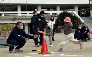 硬式野球部 あゆみ保育園の園児とティーボール教室を行いました。