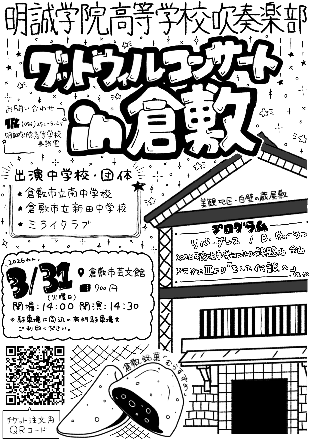 演目は、2026年度全日本吹奏楽コンクール課題曲のほか、生徒構成メドレー『1.2.3.4!GO!GO!明誠』、『窓の外には』です。