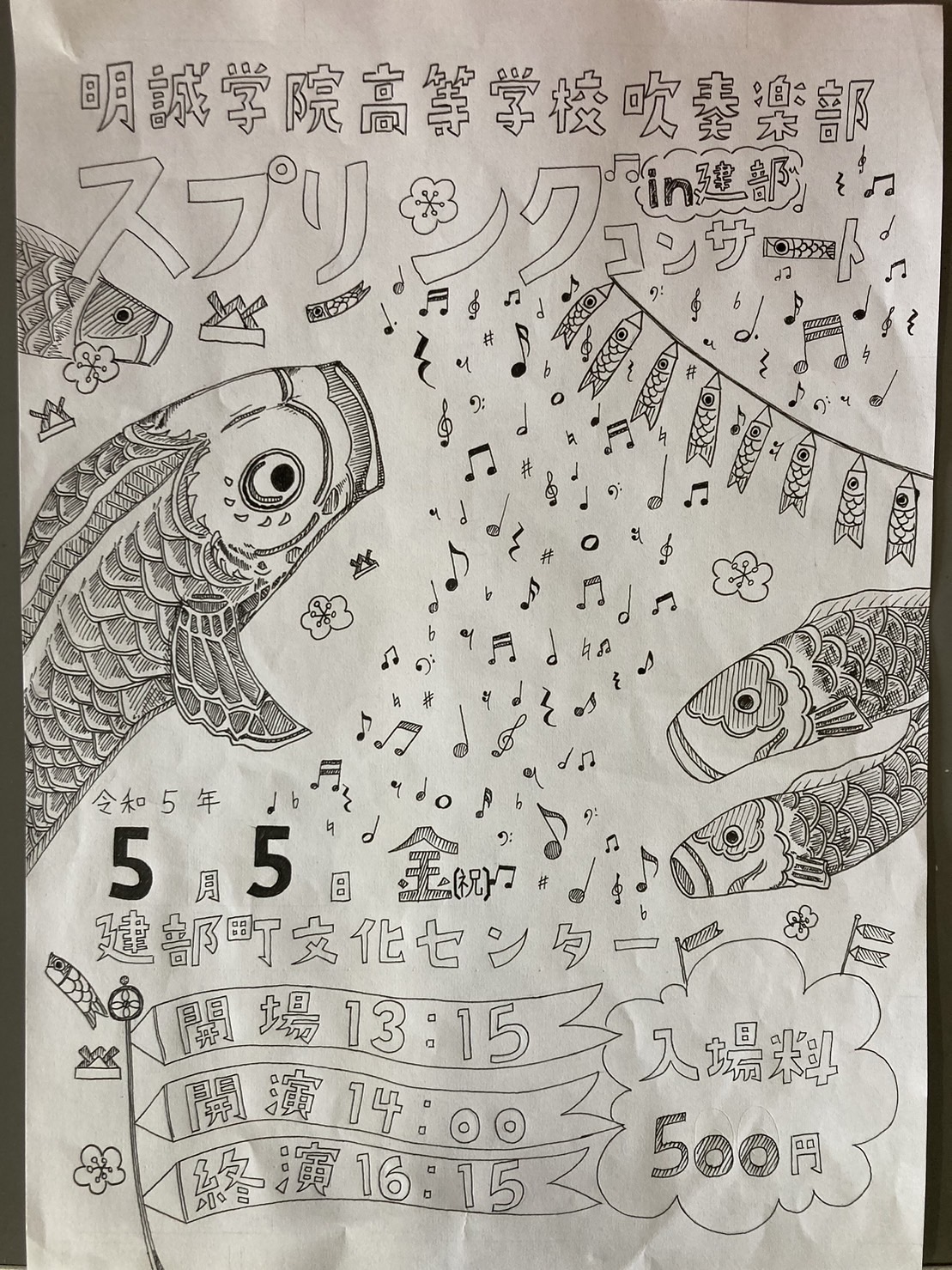 5月5日のスプリングコンサートin建部は新入生を迎えてはじめての演奏会です。今年度の吹奏楽コンクールの課題曲などを演奏します。