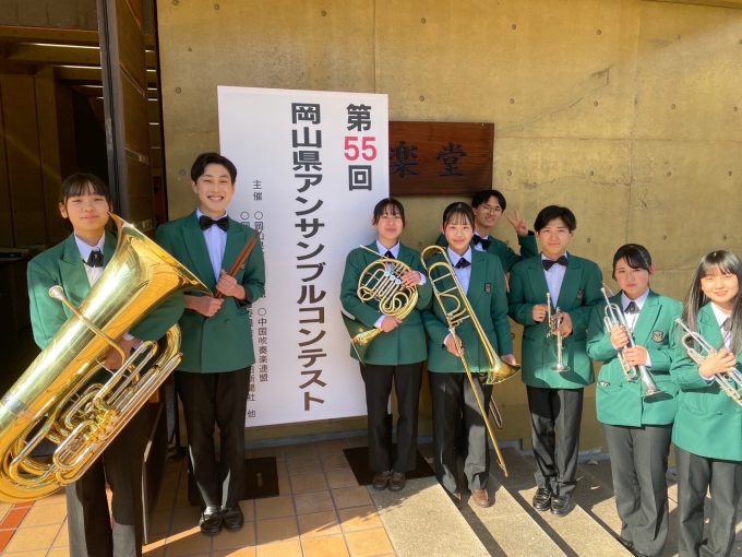 12月24日(日)、くらしき作陽大学で行われた第55回岡山県アンサンブルコンテストで本校の管楽八重奏チームと管打八重奏チームが出場し、2チームとも金賞を受賞、そして岡山県代表に選ばれました!!