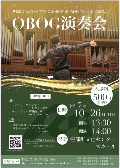 10月26日(日)、建部町文化センターにて、「OBOG演奏会」を行います。