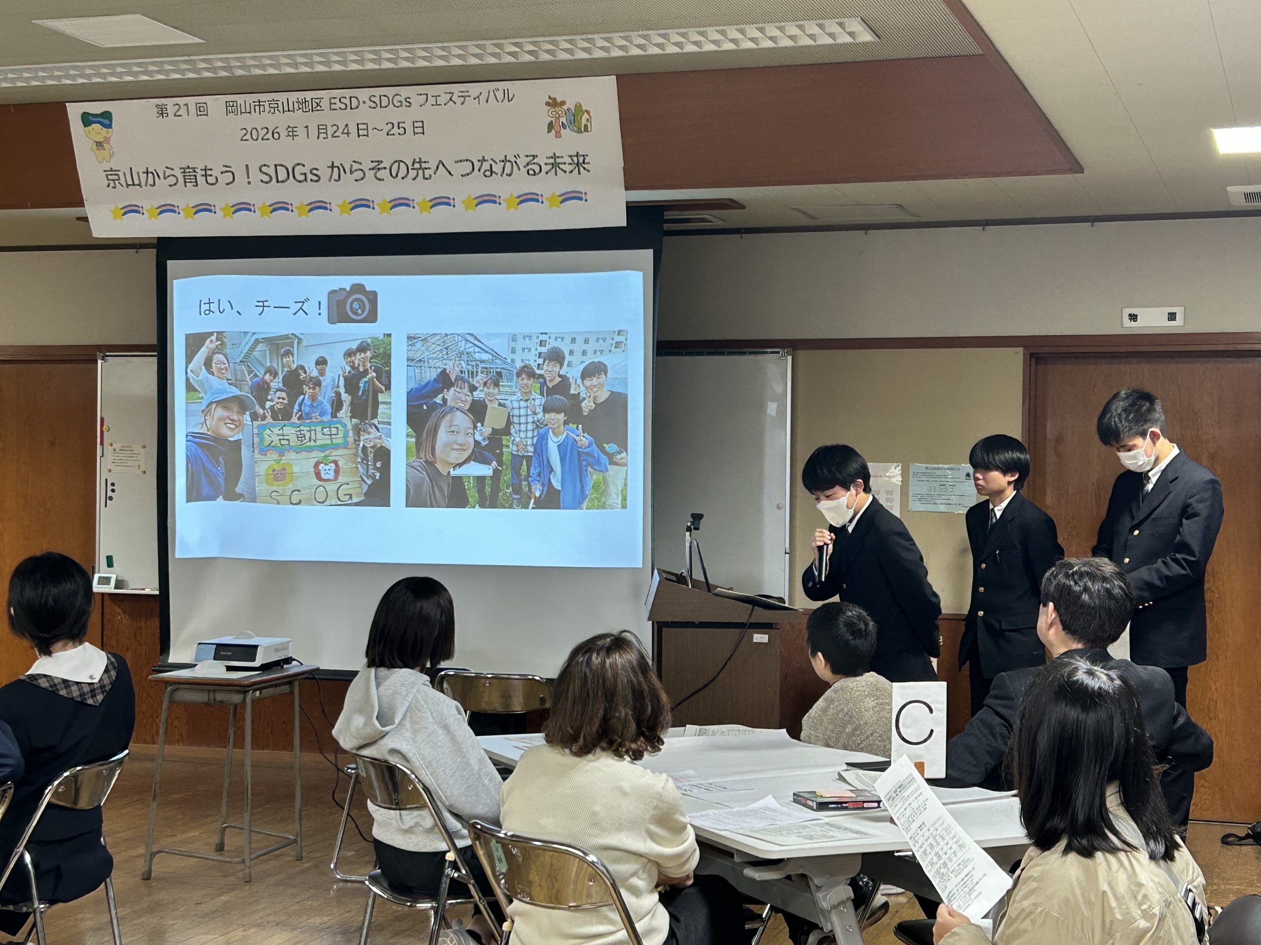 1月24日(土)、1月25日(日)に京山公民館で行われた「岡山市京山地区 第21回 ESD・SDGs フェスティバル」に特別進学コースⅠ類の生徒が参加し、地域の方々とともに多彩な活動に取り組みました。