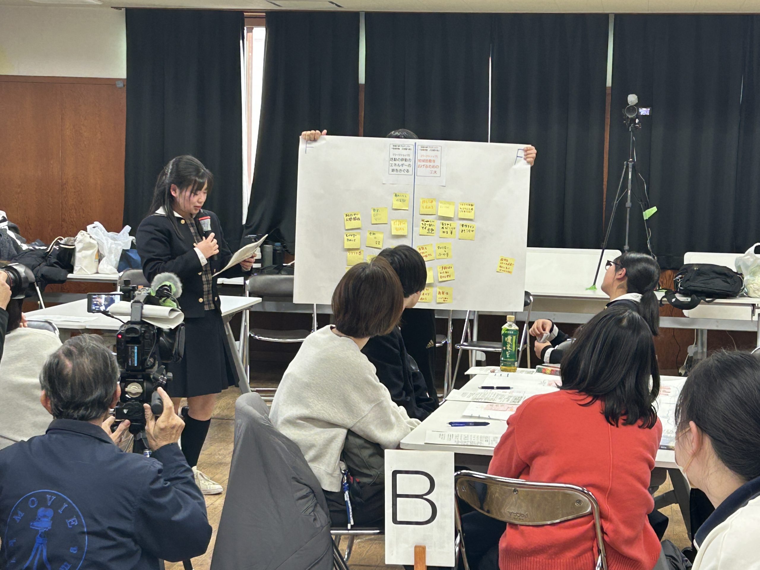 まず、1年生が学校や地域の課題をテーマにした演劇に出演し、物語を通して問題の本質や解決への想いを表現しました。舞台に立った生徒たちの演技は、観客の心に寄り添いながら、地域への関心をやさしく喚起する温かな時間を生み出しました。