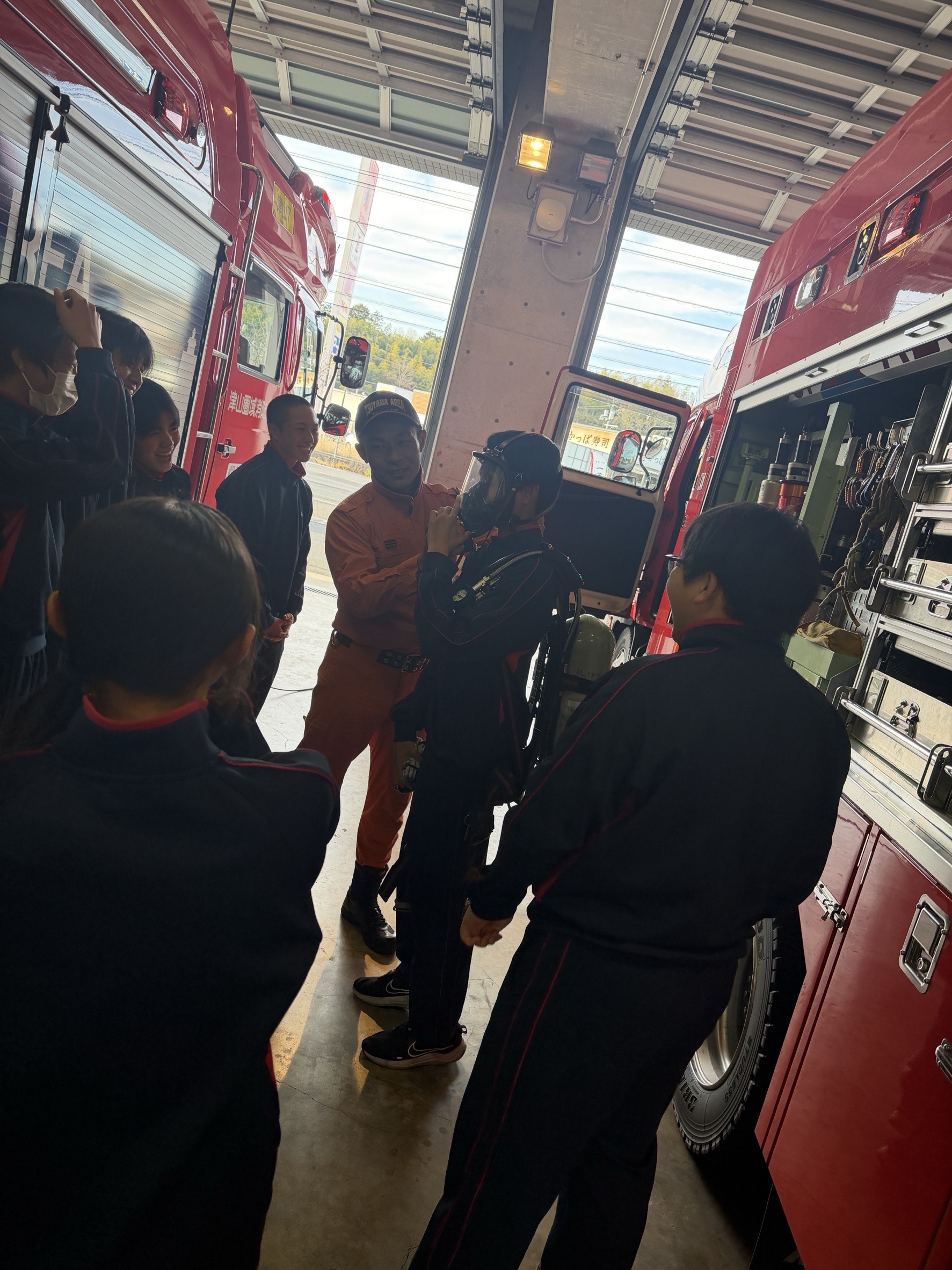 12月19日(金)、1年生の新情報コースの希望者が津山圏域消防組合消防本部にて業務説明と訓練体験を受けました。