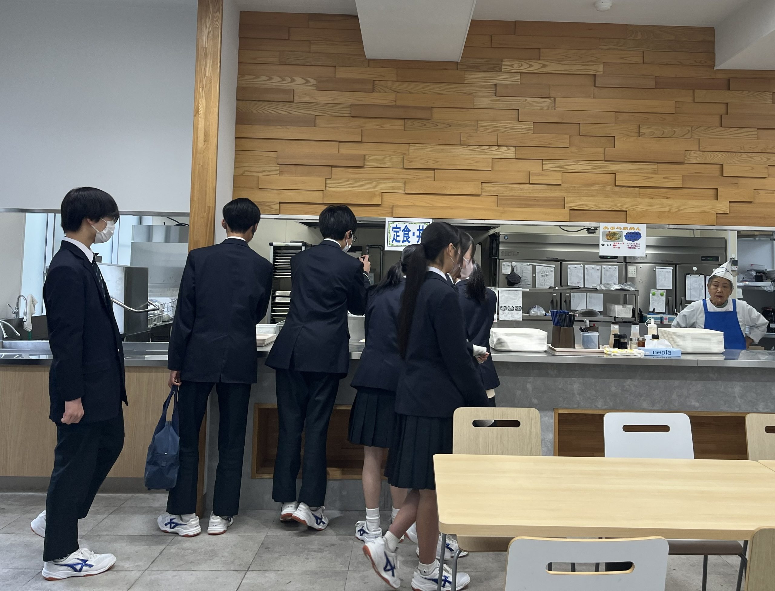 普段は給食の中学生にとって食堂は特に関心が高く、楽しそうに見学する姿が印象的でした。