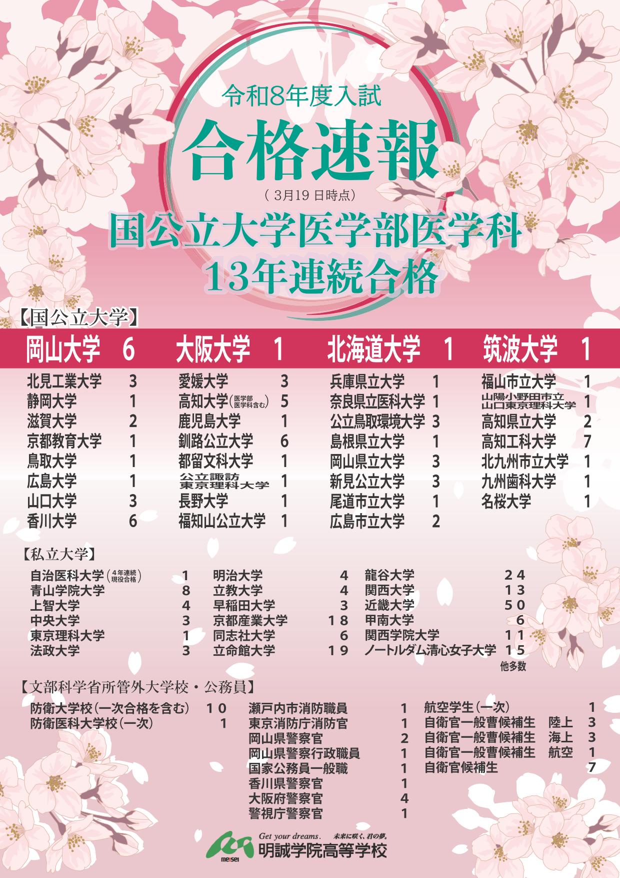 令和8年度入試 合格速報を掲載します(3月19日更新)