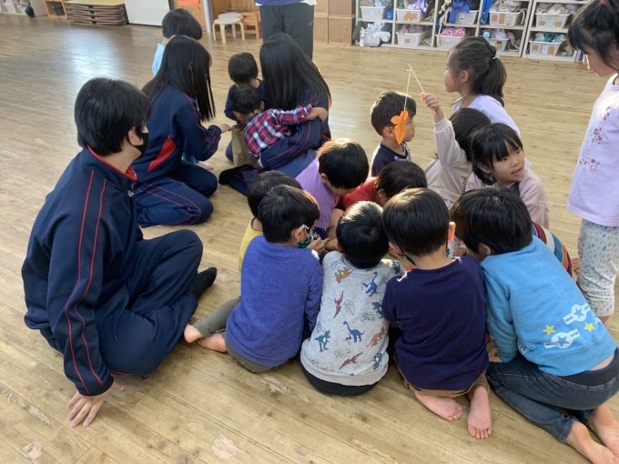 「保育園には自分たちで作ったおもちゃを持って行きました。最初は喜んでくれるか不安でしたが、みんな笑顔で遊んでくれて『お姉ちゃん!』『お兄ちゃん!』と呼んでくれました。とても嬉しかったです。このような機会を用意してくださったあゆみ保育園のみなさんに感謝しています。ありがとうございました。」