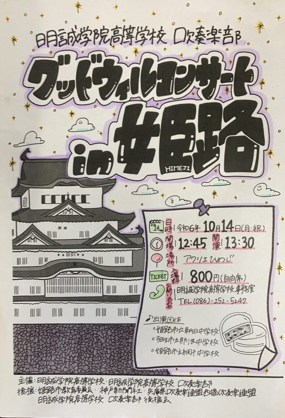 10月14日(月・祝)、アクリエ姫路にて、「グッドウィルコンサートin姫路」を行います。