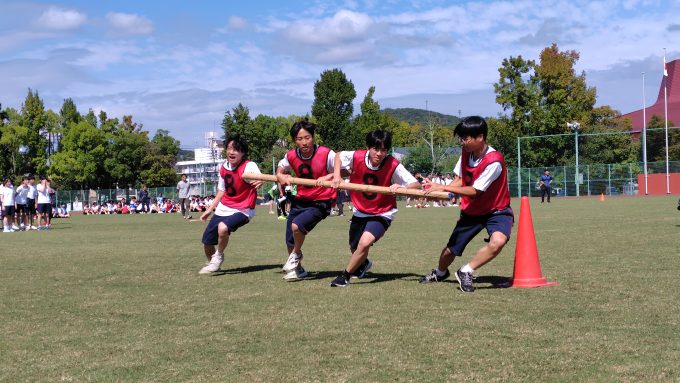 トーナメント形式で行われた綱引きでは、なんとベスト4をすべて1年生が占めるという快挙!その勢いのまま、1年7組が見事優勝を果たしました。初々しさとパワーを兼ね備えた1年生たちの健闘に、大きな拍手が送られました。