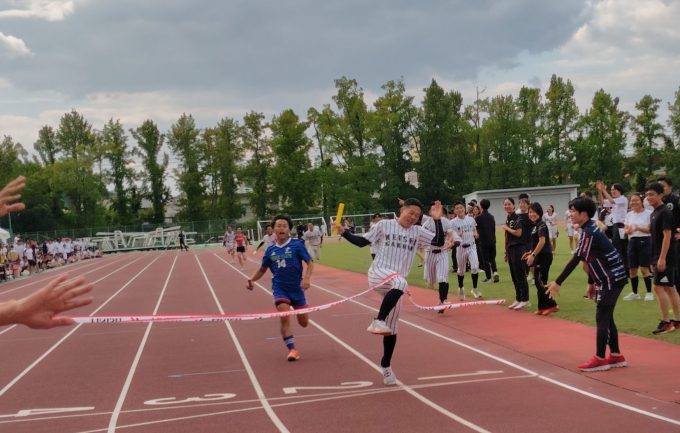 体育祭の最後を飾ったのは、部活動対抗の800mリレー。サッカー部と野球部による一騎打ちのような接戦となり、会場全体が手に汗握る展開に。勝負はラストランナーになるまで分かりませんでしたが、野球部が最後までリードを守りきり勝利を収めました。